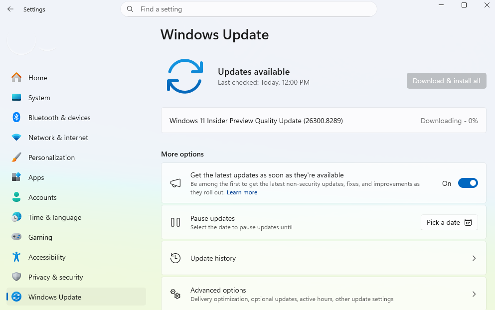 Gebruikers zien updates voortaan overzichtelijk terug in een nieuwe sectie genaamd “Beschikbare updates” binnen de Windows Update-instellingen. Updates worden op de achtergrond gedownload en pas geïnstalleerd op een moment dat jij kiest, of tijdens een geplande updatecyclus.