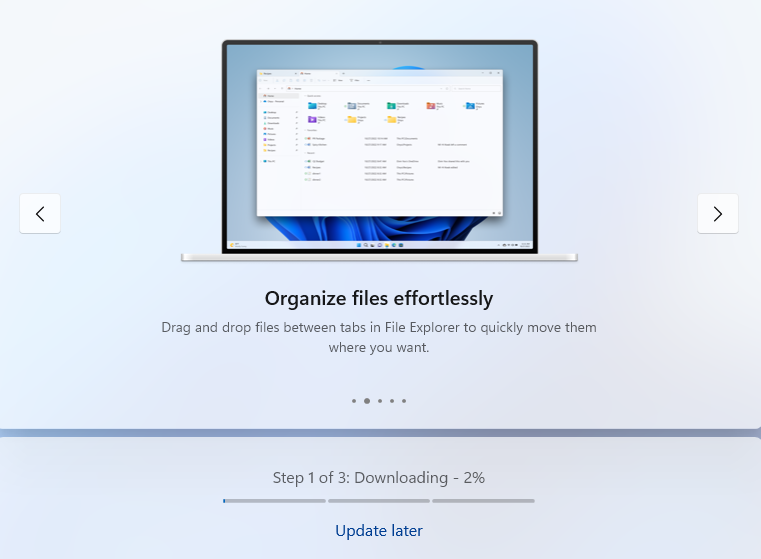 - Een nieuwe “Later updaten”-knop tijdens de installatie van Windows 11