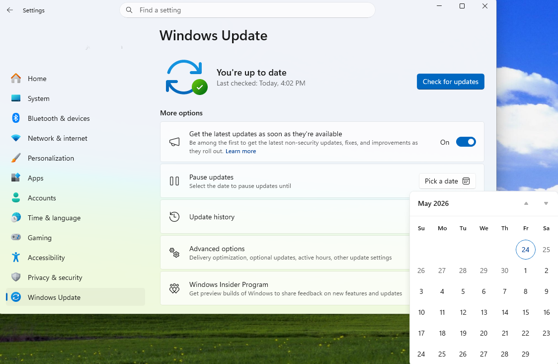 Een van de meest opvallende wijzigingen is de uitbreiding van de pauzefunctie. Standaard kun je updates nog steeds tot 35 dagen pauzeren, maar nu kun je deze periode steeds opnieuw verlengen.