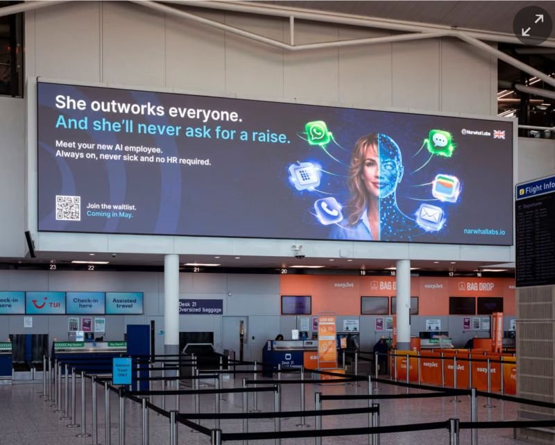 Een Britse AI-start-up heeft de discussie over technologie, arbeid en gender flink op scherp gezet met een opvallend agressieve reclamecampagne. Het bedrijf Narwhal Labs presenteerde daarin een zogeheten “AI-medewerker” als hét alternatief voor menselijke werknemers — met slogans die niet alleen provoceren, maar ook diepere maatschappelijke spanningen blootleggen.