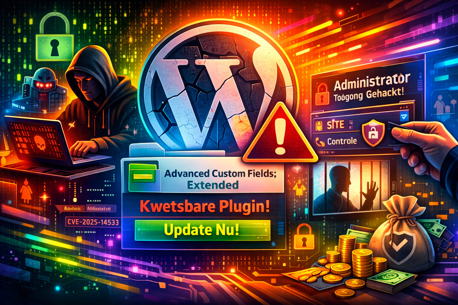 Veel websites wereldwijd draaien op WordPress en vertrouwen daarbij op een uitgebreid ecosysteem van plugins om extra functionaliteit toe te voegen. Die afhankelijkheid heeft echter ook een keerzijde: wanneer plugins niet tijdig worden bijgewerkt, kunnen ernstige beveiligingslekken ontstaan. Dat is momenteel het geval bij de WordPress-plugin Advanced Custom Fields: Extended, waarvoor al sinds december een kritieke beveiligingsupdate beschikbaar is. Ernstige kwetsbaarheid met grote impact De plugin Advanced Custom Fields: Extended, een populaire uitbreiding op de veelgebruikte Advanced Custom Fields-plugin, bevat een ernstige kwetsbaarheid in alle versies tot en met 0.9.2.1. Het probleem maakt privilege-escalatie mogelijk. In de praktijk betekent dit dat een kwaadwillende gebruiker zich – onder bepaalde omstandigheden – kan registreren als administrator van de website. Zodra een aanvaller administratorrechten verkrijgt, heeft die volledige controle over de WordPress-installatie. Dat omvat onder meer het aanpassen of verwijderen van content, het installeren van extra (kwaadaardige) plugins, het toevoegen of verwijderen van gebruikers en zelfs het blokkeren van de oorspronkelijke site-eigenaar en beheerders. In feite kan een website volledig worden overgenomen. Afhankelijk van configuratie, maar risico blijft groot Volgens beveiligingsonderzoekers is het misbruik van deze kwetsbaarheid weliswaar afhankelijk van specifieke instellingen in het registratieproces van de website. In veel gevallen staat gebruikersregistratie niet zo open ingesteld dat directe exploitatie mogelijk is. Toch vormt dit geen geruststelling. Zodra een site wél een kwetsbare configuratie heeft of deze in de toekomst per ongeluk activeert, ligt misbruik direct op de loer. Juist vanwege de potentiële impact kreeg dit beveiligingslek een uitzonderlijk hoge score van 9,8 op 10 binnen het internationale Common Vulnerabilities and Exposures (CVE)-register. De kwetsbaarheid is daar vastgelegd onder de code CVE-2025-14533, wat duidt op een kritiek risico dat onmiddellijke actie vereist. Populaire plugin, trage updates Advanced Custom Fields: Extended is geen obscure plugin. Met meer dan 100.000 actieve installaties behoort zij tot de veelgebruikte uitbreidingen binnen het WordPress-ecosysteem. Dat maakt het probleem des te zorgwekkender, aangezien een aanzienlijk deel van die installaties nog steeds niet is bijgewerkt. De beveiligingsupdate, versie 0.9.2.2, werd al op 14 december uitgebracht. Toch blijkt weken later dat veel websitebeheerders deze update nog niet hebben doorgevoerd. Dit onderstreept een breder probleem binnen WordPress-beheer: updates worden te vaak uitgesteld, terwijl juist plugins een van de meest voorkomende aanvalsvectoren vormen. Wat doet de plugin precies? De Extended-plugin bouwt voort op Advanced Custom Fields, een bekende WordPress-plugin die het mogelijk maakt om aangepaste velden toe te voegen aan pagina’s, berichten en andere contenttypes. Hierdoor kunnen websites eenvoudiger complexe inhoudsstructuren beheren, zonder diep in de code te hoeven duiken. De Extended-variant voegt daar extra functionaliteit aan toe, zoals meer veldtypes, geavanceerdere instellingen en uitgebreidere mogelijkheden voor ontwikkelaars en contentbeheerders. Juist door die extra complexiteit kan echter ook extra risico ontstaan wanneer beveiliging niet zorgvuldig wordt geïmplementeerd. Ontdekking en beloningssysteem De kwetsbaarheid werd onder de aandacht gebracht door beveiligingsonderzoeker Andrea Bocchetti, die zijn bevindingen rapporteerde via het beveiligingsplatform Wordfence. Dit platform hanteert een zogenaamd bug bounty-programma, waarbij onderzoekers financieel worden beloond voor het verantwoord melden van beveiligingsproblemen. Dankzij dit soort programma’s worden ernstige kwetsbaarheden vaak vroegtijdig ontdekt en kunnen ontwikkelaars patches uitbrengen voordat grootschalig misbruik plaatsvindt. In dit geval leidde de melding direct tot het uitbrengen van een beveiligingsupdate. Oproep aan websitebeheerders Voor WordPress-beheerders is de boodschap duidelijk: controleer onmiddellijk of Advanced Custom Fields: Extended op de website is geïnstalleerd en update deze zonder uitstel naar versie 0.9.2.2 of hoger. Wie plugins niet actief gebruikt, doet er bovendien goed aan deze volledig te verwijderen. Het incident benadrukt opnieuw het belang van regelmatig onderhoud, automatische updates waar mogelijk en een kritisch oog voor welke plugins daadwerkelijk nodig zijn. In een ecosysteem zo groot als WordPress is beveiliging geen eenmalige actie, maar een continu proces. Door: Drifter