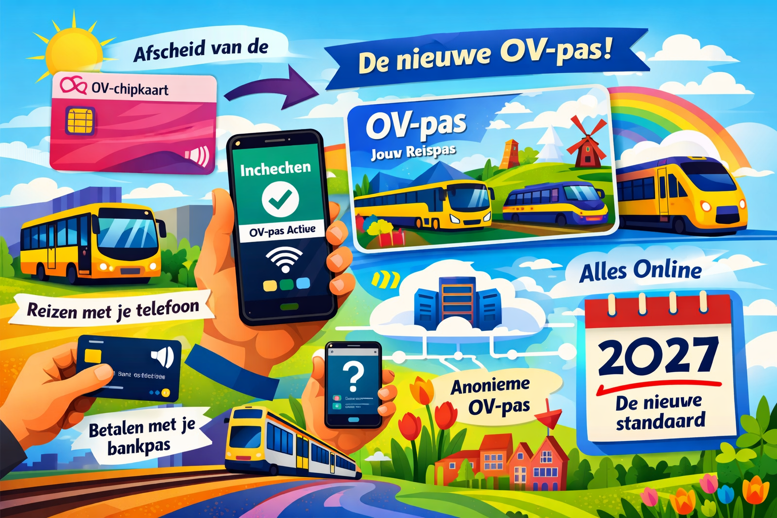 Wie regelmatig met het openbaar vervoer reist, maakt vrijwel zeker gebruik van de ov-chipkaart. Sinds de landelijke invoering in 2007 is deze kaart het standaardbetaalmiddel in bus, tram, metro en trein. Toch komt er na bijna twintig jaar een einde aan dit systeem. Vanaf 2027 wordt de ov-chipkaart definitief vervangen door een nieuw betaalsysteem: de ov-pas. De overgang gebeurt geleidelijk. Tot die tijd blijven meerdere manieren om te betalen naast elkaar bestaan, waaronder de bekende ov-chipkaart en betalen met een bankpas. Uiteindelijk moet de ov-pas het centrale en meest complete vervoersbewijs worden. Waarom de ov-chipkaart wordt vervangen Hoewel de ov-chipkaart jarenlang goed heeft gefunctioneerd, zijn er al langere tijd klachten over de gebruiksvriendelijkheid en betrouwbaarheid. Reizigers ervaren problemen met saldo, in- en uitchecken en het overzetten van abonnementen. Het grootste knelpunt ligt echter onder de motorkap: de techniek achter de ov-chipkaart is verouderd. Bij de ov-chipkaart staat vrijwel alle informatie op de kaart zelf opgeslagen. Denk aan reisgegevens, saldo, abonnementen en kortingsrechten. Dat systeem is lastig te vernieuwen, kwetsbaar bij storingen en beperkt in mogelijkheden. Daarom is gekozen voor een fundamenteel ander systeem. Wat is de ov-pas? De ov-pas is de moderne opvolger van de ov-chipkaart en werkt op basis van een online account. In plaats van dat gegevens op de kaart zelf staan, worden ze centraal en veilig opgeslagen in de cloud. De pas fungeert daardoor vooral als toegangssleutel tot je persoonlijke reisaccount. Net als bij de ov-chipkaart kun je op de ov-pas: abonnementen zetten leeftijdskorting gebruiken kortingsproducten activeren reizen bij alle vervoerders in Nederland Daarnaast komen er ook anonieme ov-passen, voor reizigers die geen persoonlijk account willen of kunnen gebruiken. Groot verschil: ook reizen met je telefoon Het belangrijkste verschil met de ov-chipkaart is dat de ov-pas niet per se fysiek nodig is. Doordat alles gekoppeld is aan een online account, kan de ov-pas ook digitaal worden gebruikt, bijvoorbeeld via een smartphone. Dit werkt vergelijkbaar met betalen via Apple Pay of Google Wallet. Dat betekent dat je in de toekomst: kunt in- en uitchecken met je telefoon geen aparte kaart meer hoeft mee te nemen bij verlies van de pas je gegevens niet kwijt bent Dit maakt het systeem flexibeler en gebruiksvriendelijker, vooral voor frequente reizigers. Wanneer wordt de ov-pas ingevoerd? De ov-pas wordt gefaseerd ingevoerd en zal in 2027 de standaard worden. Dat betekent niet dat alles pas dan verandert: de overgang is al begonnen. Op dit moment wordt de ov-pas al gebruikt door: reizigers die het volle tarief betalen reizigers met leeftijdskorting gebruikers in bus, tram en metro Later worden stap voor stap ook andere abonnementen en reisproducten toegevoegd. Daarnaast sluiten steeds meer regionale vervoersbedrijven aan bij het nieuwe systeem. Blijft betalen met de bankpas mogelijk? Ja. Het blijft mogelijk om met een bankpas, creditcard of mobiele betaaloplossing in het openbaar vervoer te reizen. Dit is vooral bedoeld voor incidentele reizigers en toeristen. Er zit wel een beperking aan deze betaalmethode: abonnementen, kortingsproducten en persoonlijke reisrechten kunnen nog niet aan een bankpas worden gekoppeld. Daarvoor blijft de ov-pas (of een digitaal account) noodzakelijk. Door: Drifter