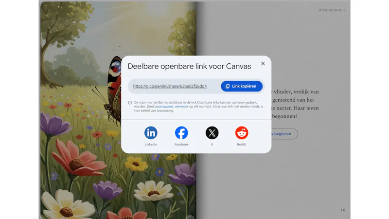 Je ontvangt een link om het geïllustreerde verhaal te delen.