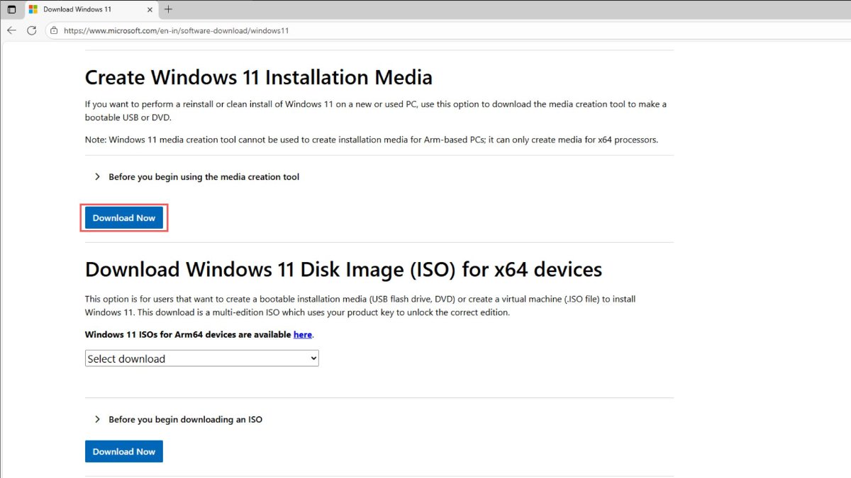 - Maak eerst een opstartbare USB via Microsofts Media Creation Tool.