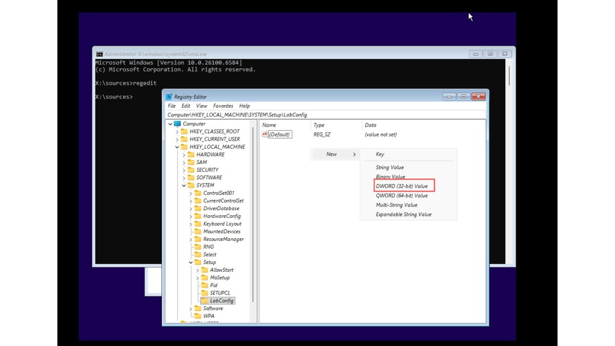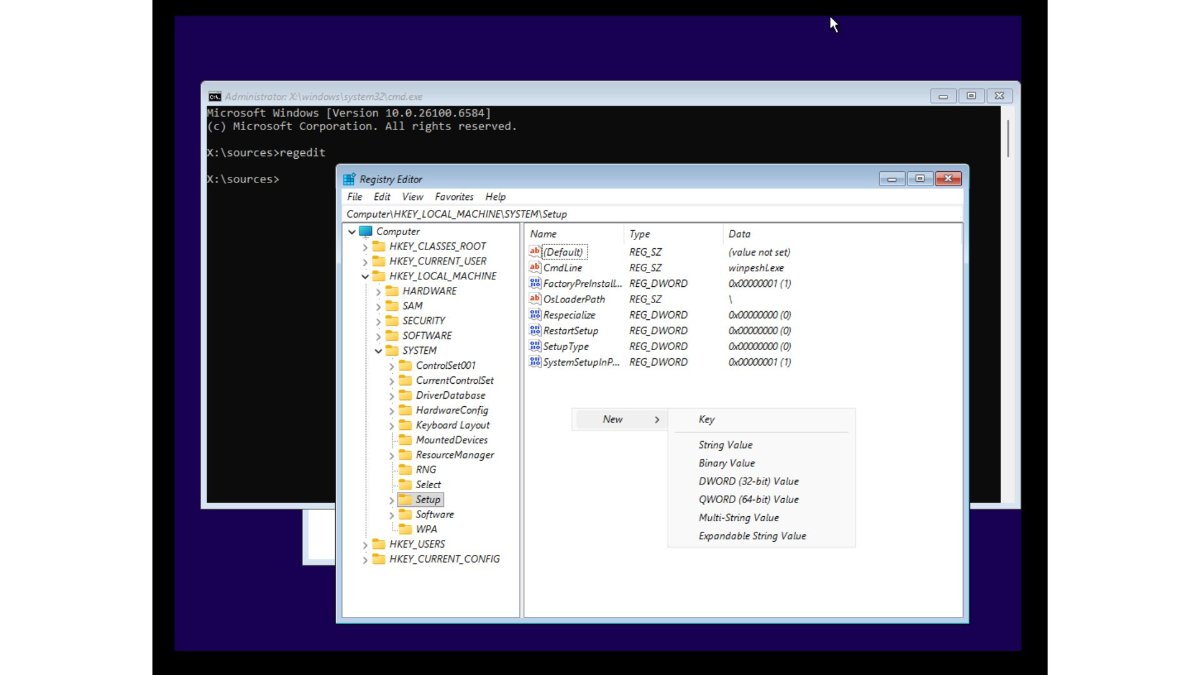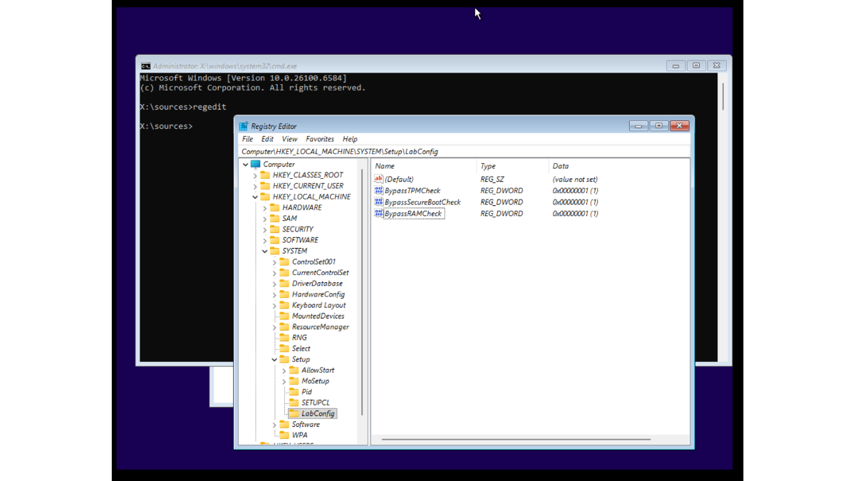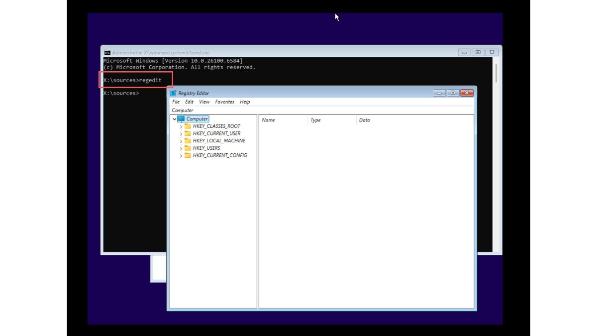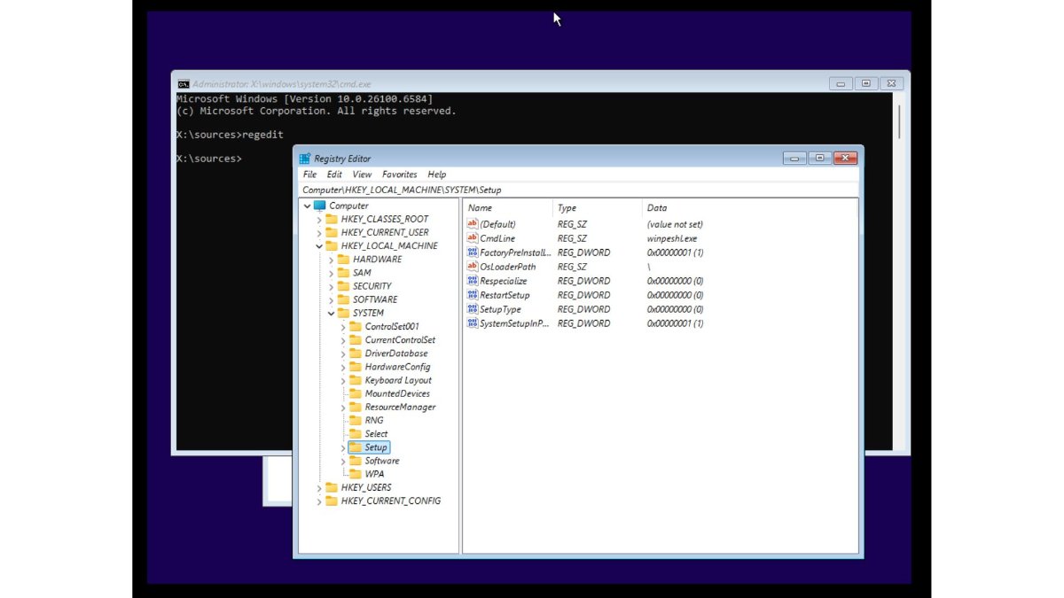🔹 Methode 3: Installeren via Registry Editor (Regedit) tijdens setup